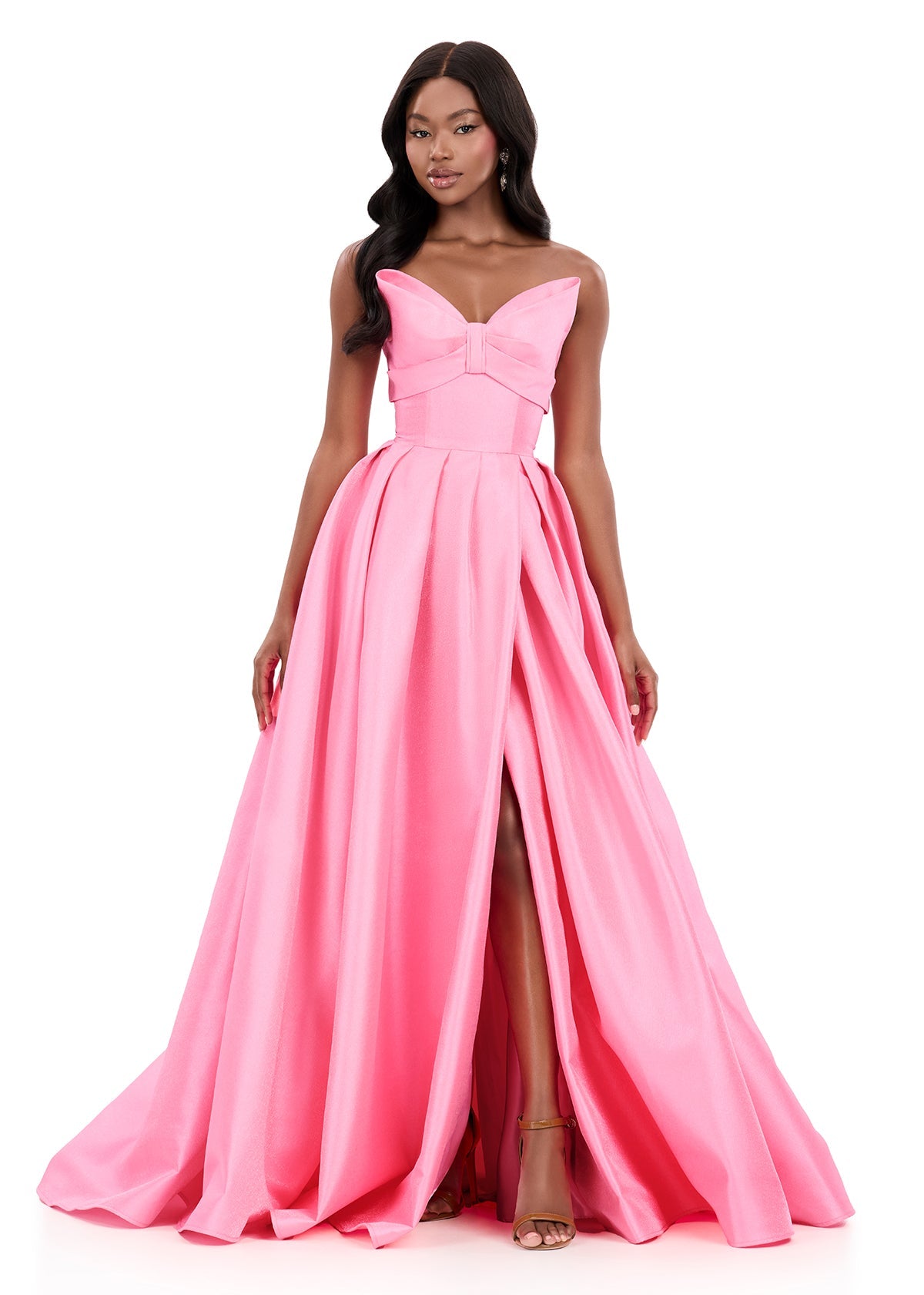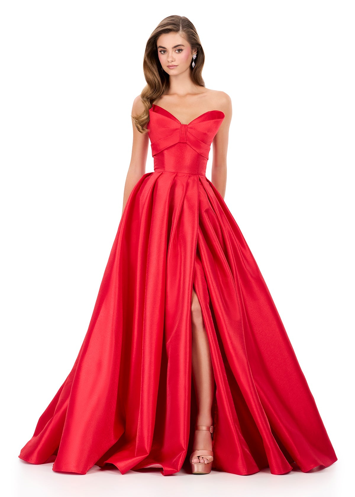 Be Chic and graceful in this beautifully tailored Mikado gown that blends simplicity with standout elegance. The ASHLEYlauren Style 12265 sweetheart bodice features subtle pleating that frames the neckline, while the full A-line skirt adds dramatic movement without overwhelming the silhouette. The clean, classic lines of this gown make it a versatile and polished choice for any formal event.